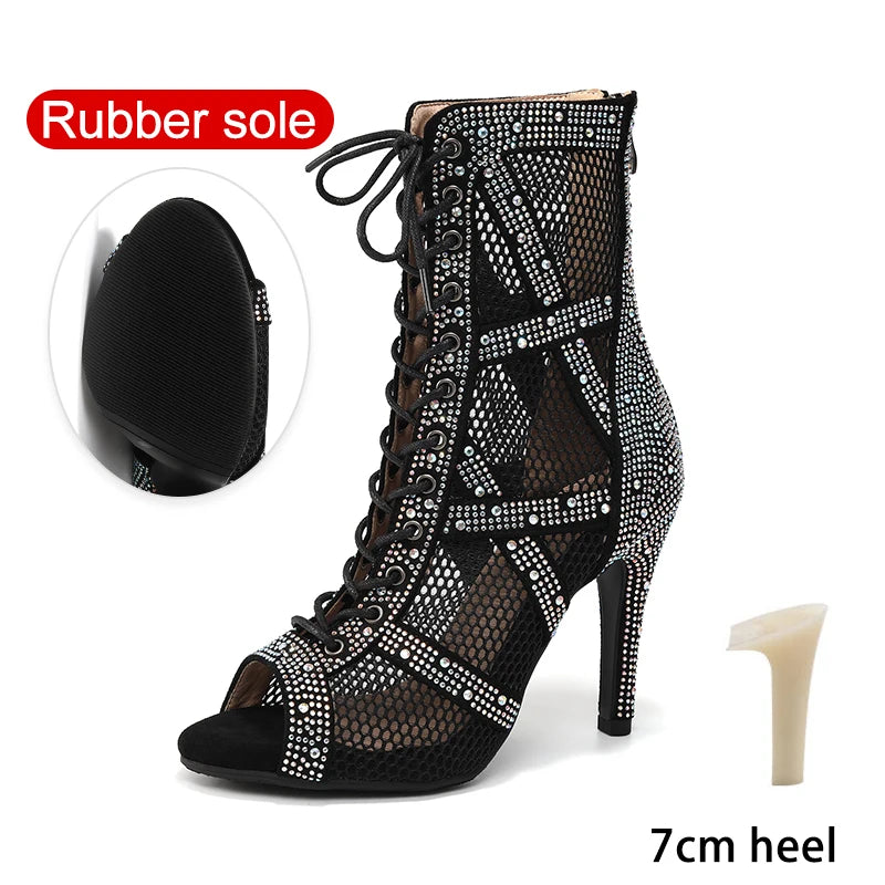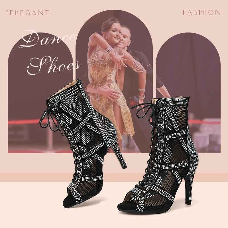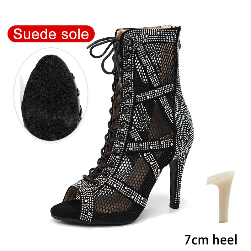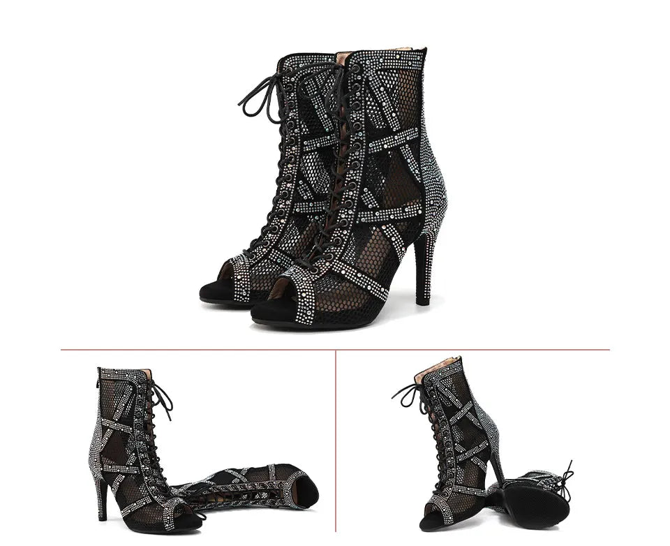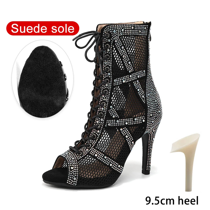 nubuck strass et zip - Chaussures de Danse Latine à Talons Hauts – Modèle LUNA II Strass Styletto Noir - Couleurs Lagon
