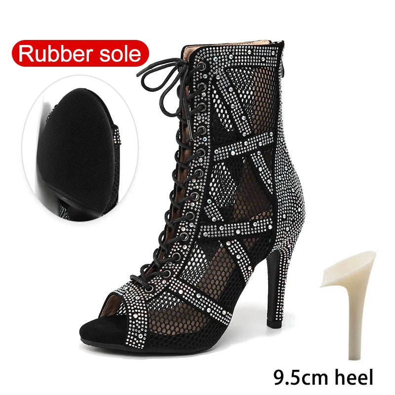 talon 9.5 - Chaussures de Danse Latine à Talons Hauts – Modèle LUNA II Strass Styletto Noir - Couleurs Lagon