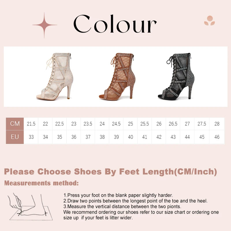 couleurs et tailles - Chaussures de Danse Latine à Talons Hauts – Modèle LUNA II Strass Styletto Noir - Couleurs Lagon