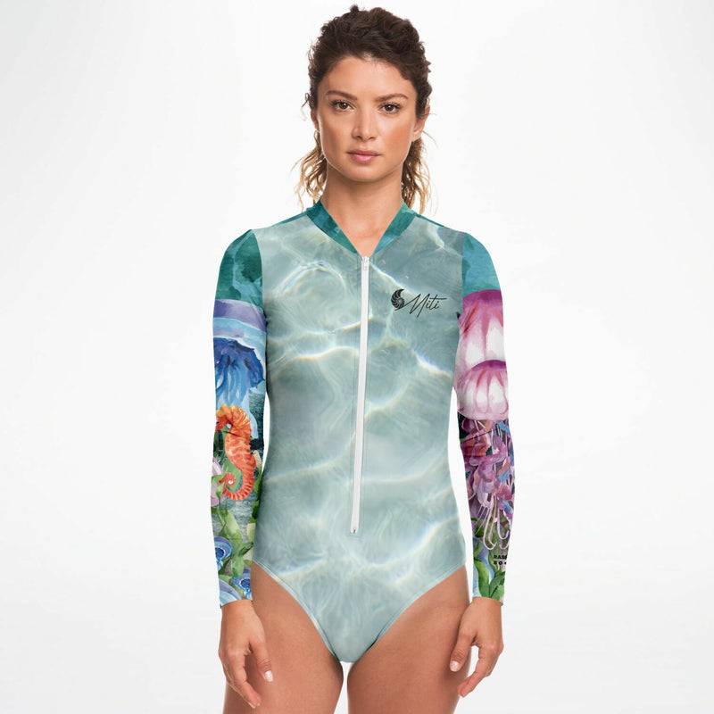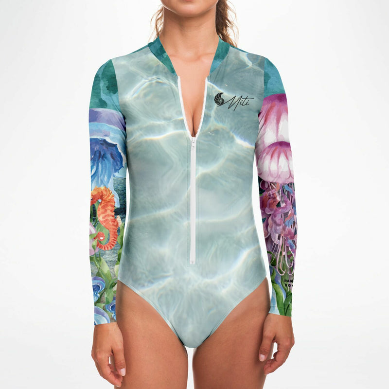 pose - Combi surf manches longues MITI caraco Meduses Couleurs Lagon